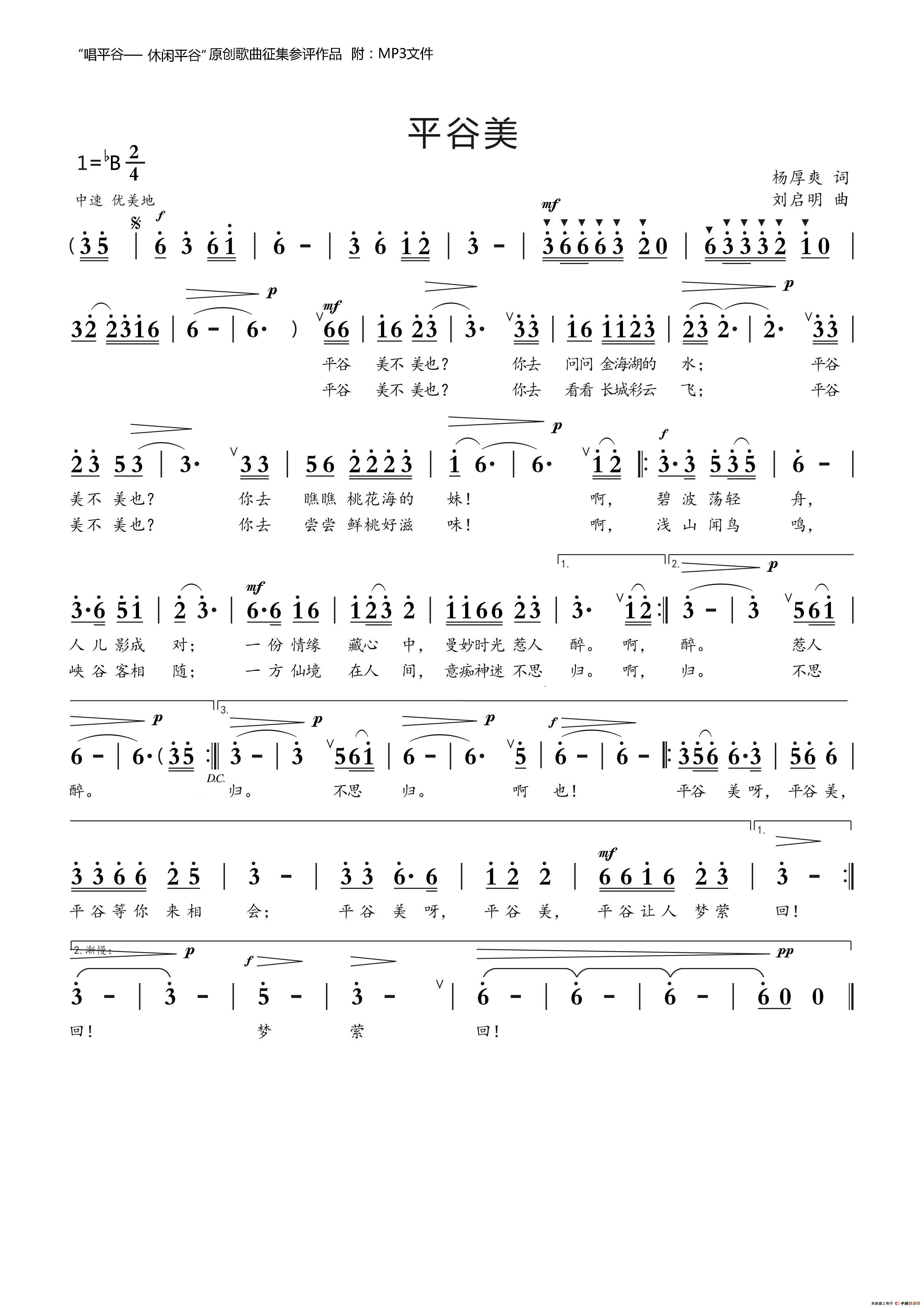 此作品荣获 "休闲平谷"征歌优秀奖。
