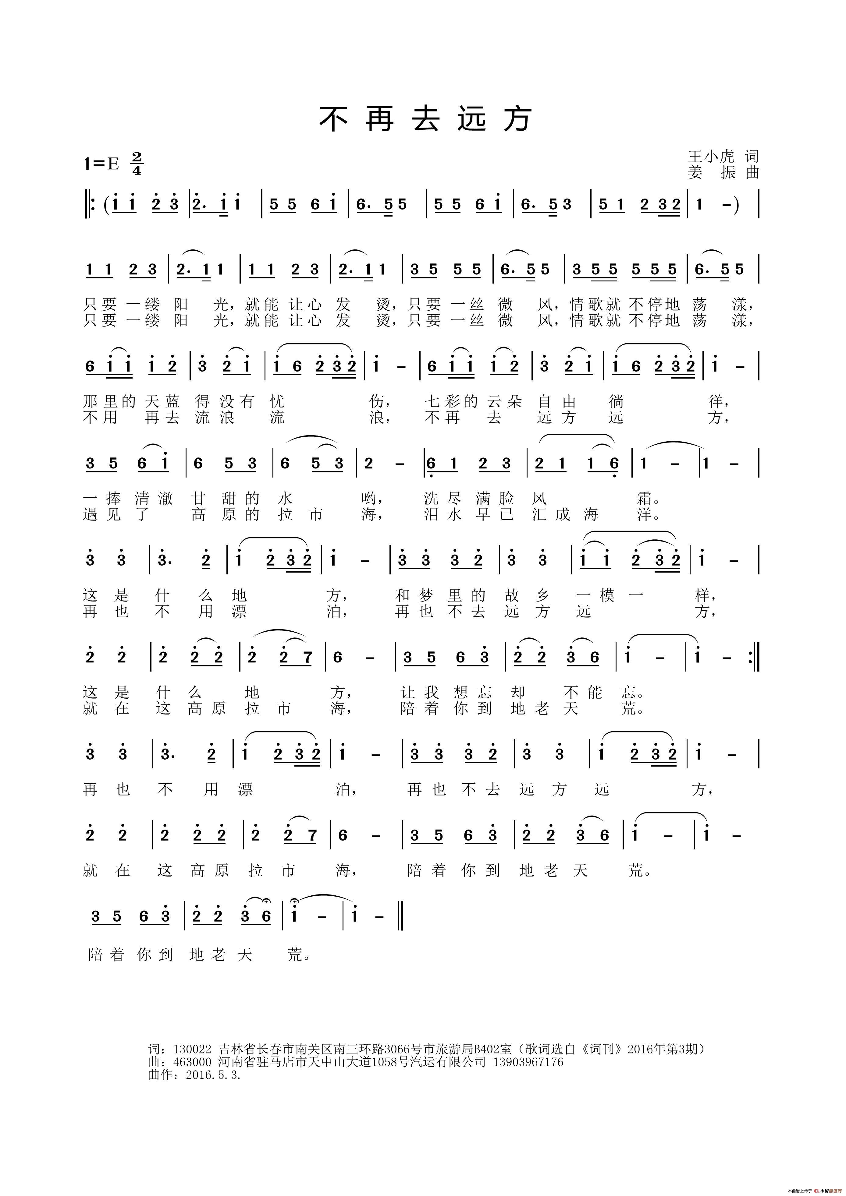 作词:王小虎   作曲:姜振   来源:谱友姜振上传   上传:姜振   日期:2016-08-19   浏览次数: