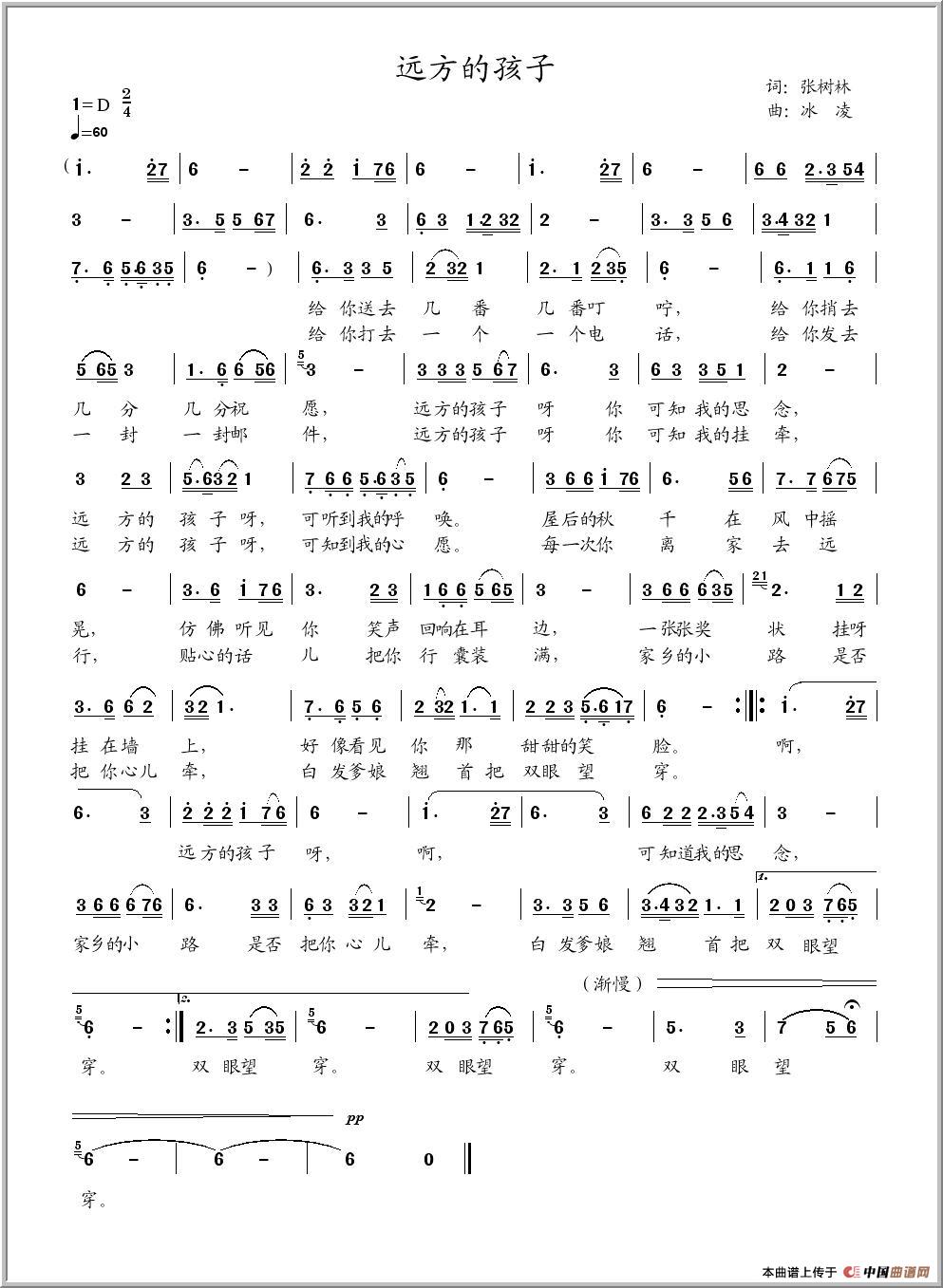 远方的孩子(张树林词 冰凌曲)(1)_原文件名:远方的孩子(曲谱).jpg