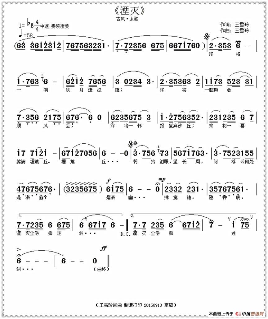 这首歌词写于去岁的“寒露”节气那天----后来进行了谱曲。这是一首描述“季节瞬息变迁·时光飞逝流淌”的有些伤感·有些无奈之情调的歌曲···(王雪玲作词作曲 制谱打印·原创)