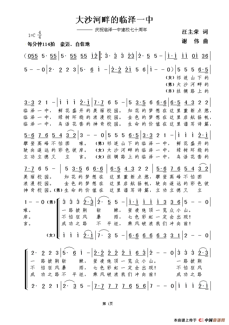 大沙河畔的临泽一中(汪主荣词 谢伟曲)(1)_原文件名:大沙河畔的临泽一中(1页).GIF