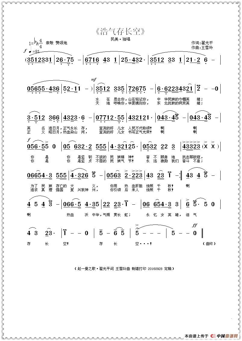 (合作曲谱)这是一位不认识的网友发到我的QQ求我与之合作谱曲的----因为我现在每天很忙,一般这样的合作都不太接了,但是我审核他的歌词后,感觉是属于很正能量的红歌类,对于当前的爱国主义教育·唤起人们向英雄·先烈们学习的意识能够起到很好的作用,就答应为他谱曲了。明天就是国庆节了,现在上传此类红歌也就是为祖国妈妈献上一份节日礼物----谢谢大家浏览!祝老师们国庆节快乐--诸事顺心!