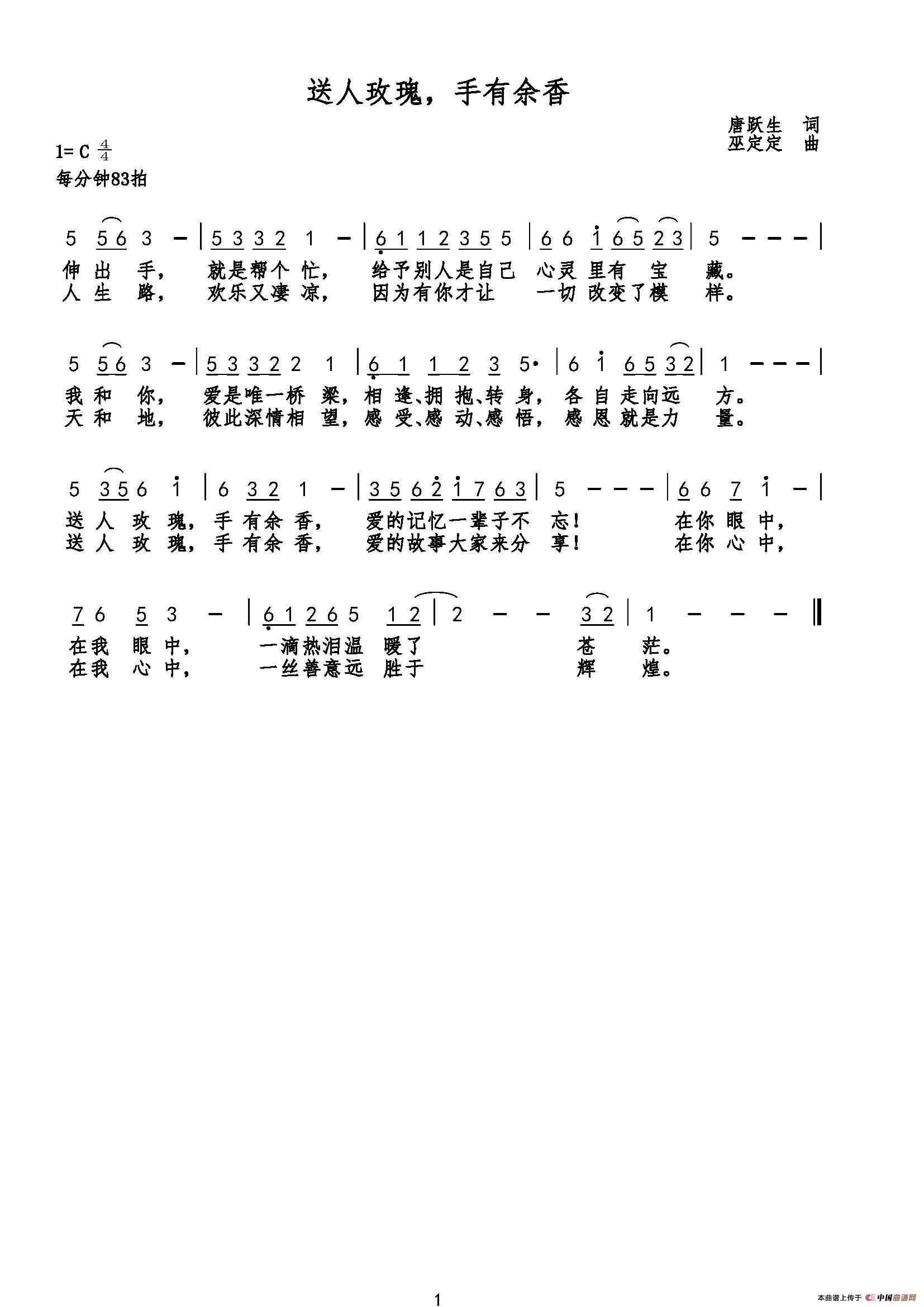 提示:在曲谱图片上单击右键,选择"图片另存为..."即可将曲谱保存到您的电脑中,打印时候可将图片插入到WORD中,调整合适大小打印即可。