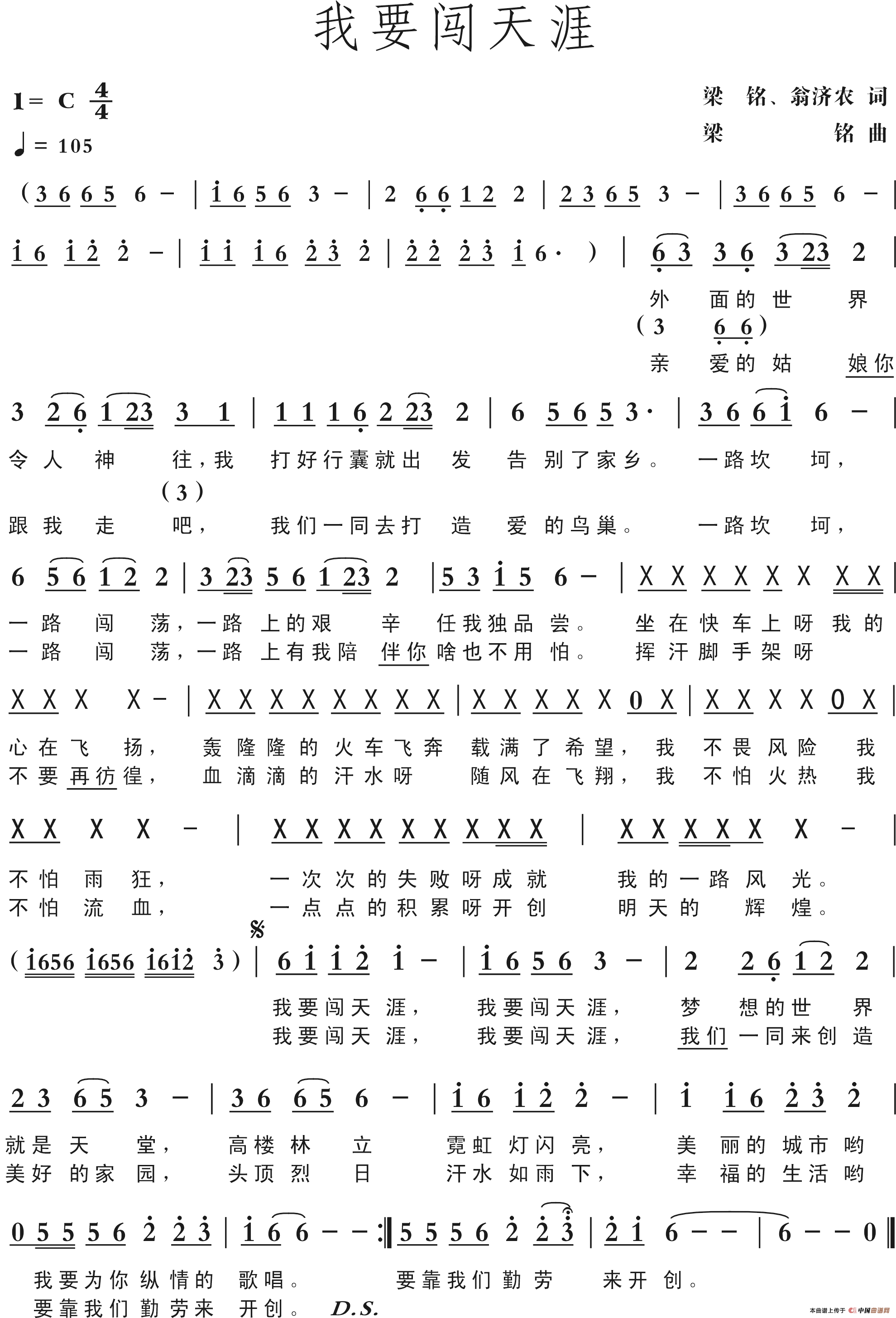 我要闯天涯(梁铭、翁济农词, 梁铭曲,演唱:贾富营)
