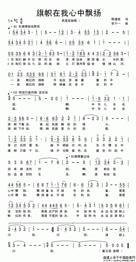 关于《旗帜在我心中飘扬》曲谱的评论