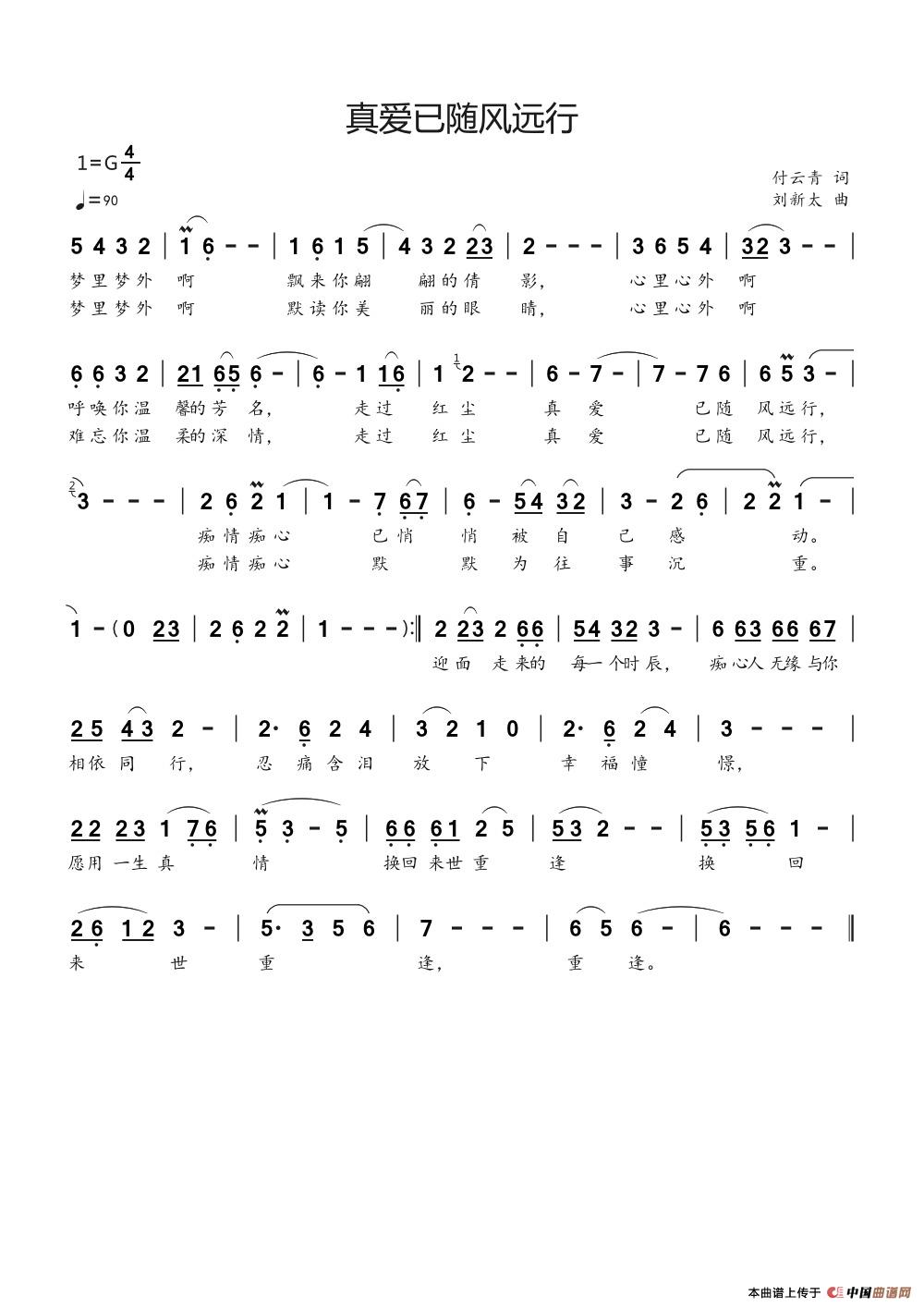 关于《真爱已随风远行》曲谱的评论
