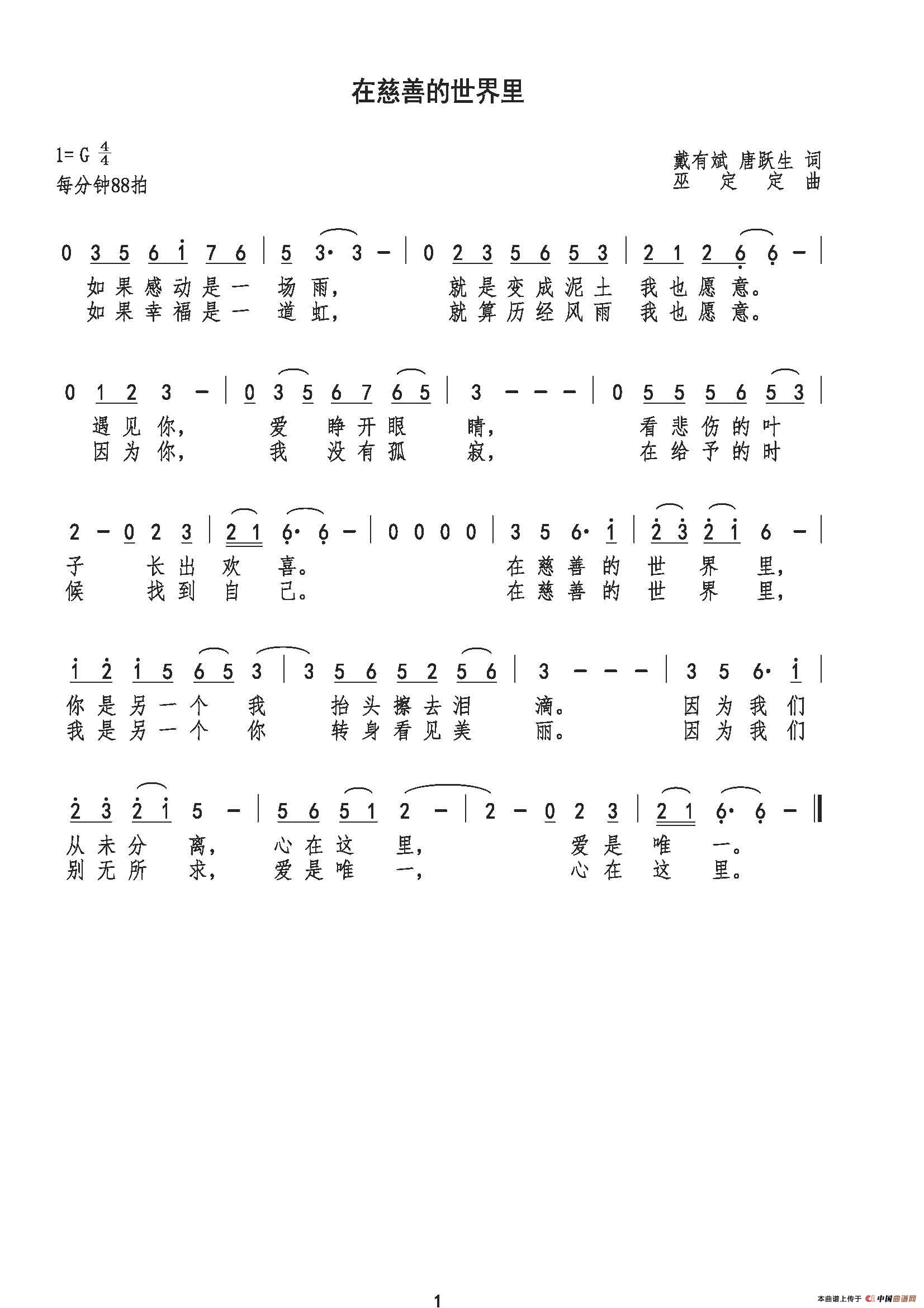 《在慈善的世界里》文本歌词