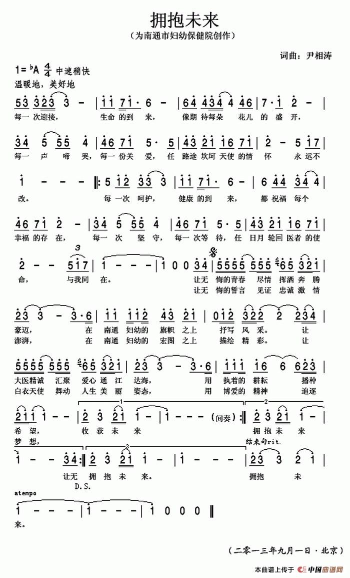提示:在曲谱图片上单击右键,选择"图片另存为..."即可将曲谱保存到您的电脑中,打印时候可将图片插入到WORD中,调整合适大小打印即可。