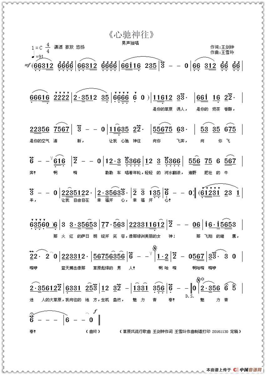 (合作曲目)这首歌是应词作者邀请而为其谱曲的曲谱----独唱·草原流行风 / 王剑钟作词·王雪玲作曲 制谱打印 / 原创----欢迎老师们浏览指教!