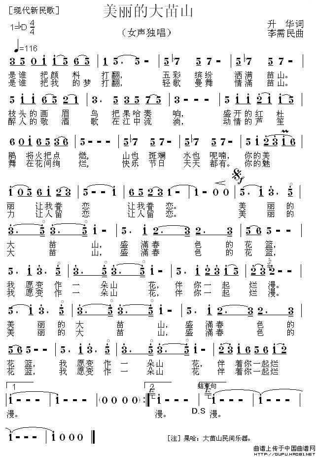 作词:升华   作曲:李需民   格式:简谱   来源:李需民(作曲)原创上传   上传:李需民   日期:2010-03-16   浏览次数: