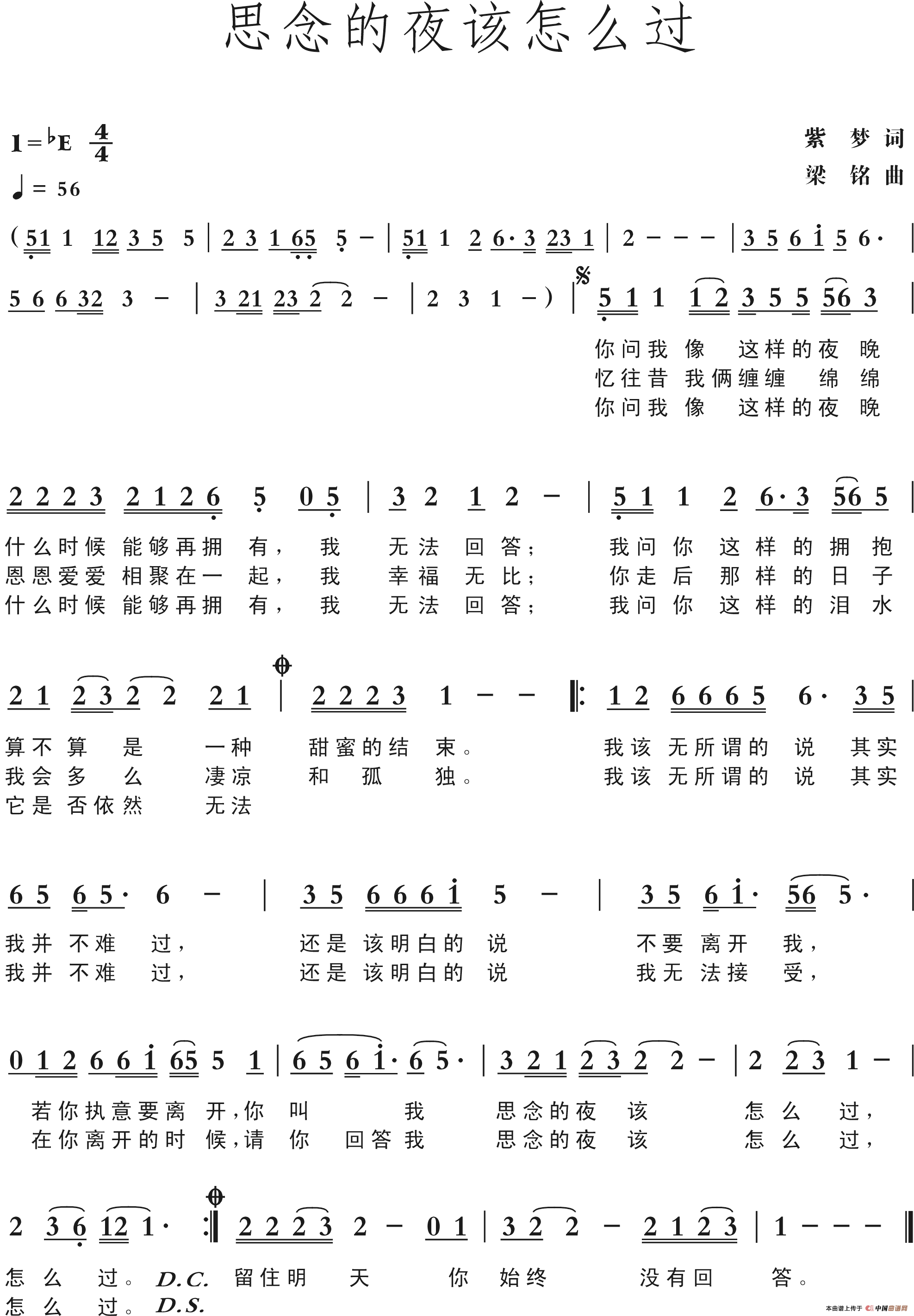 思念的夜该怎么过(紫梦词, 梁铭曲,演唱:李艳)