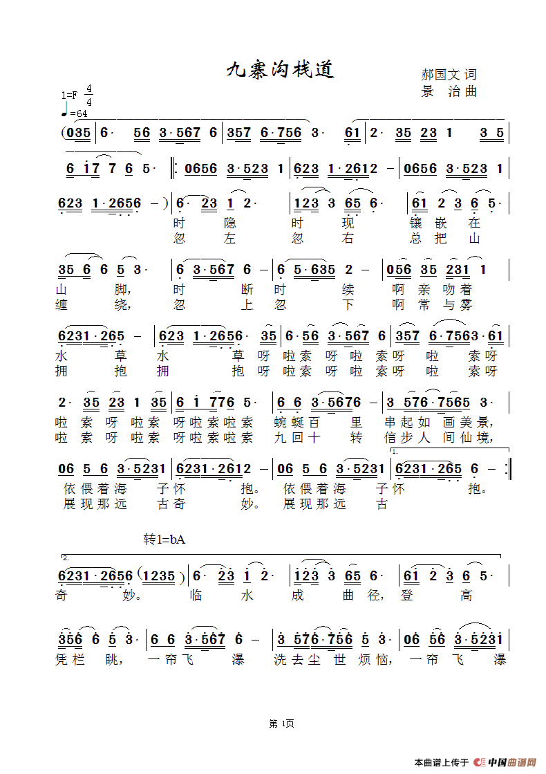 提示:在曲谱图片上单击右键,选择"图片另存为..."即可将曲谱保存到您的电脑中,打印时候可将图片插入到WORD中,调整合适大小打印即可。
