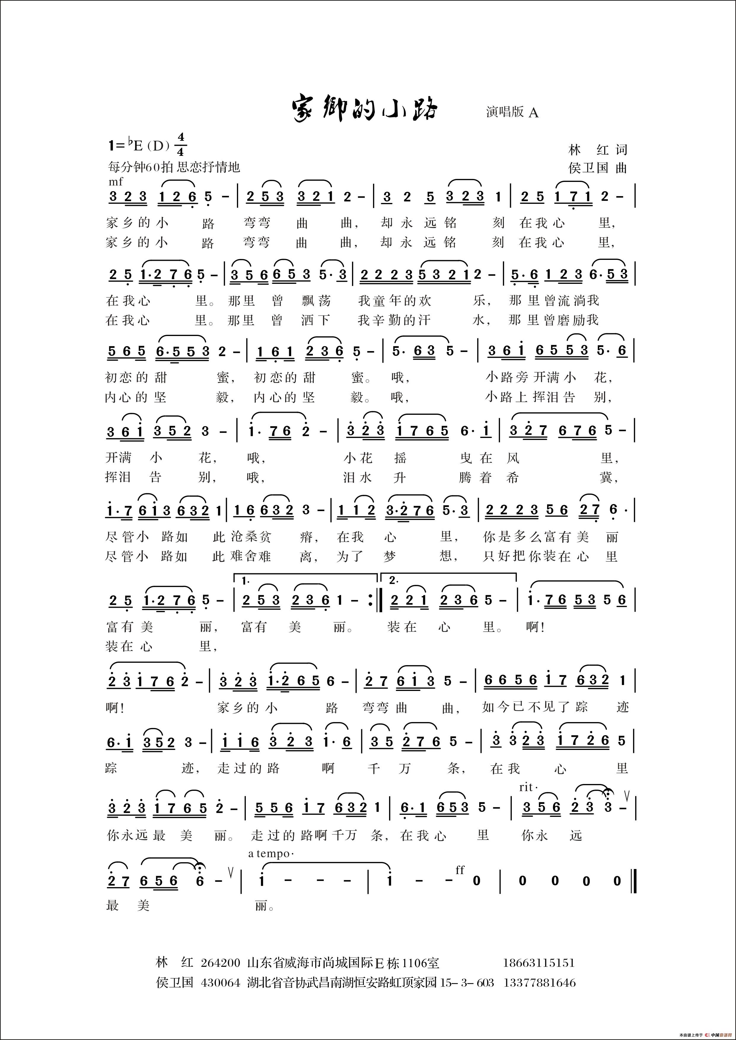 家乡的小路(林红词 侯卫国曲)