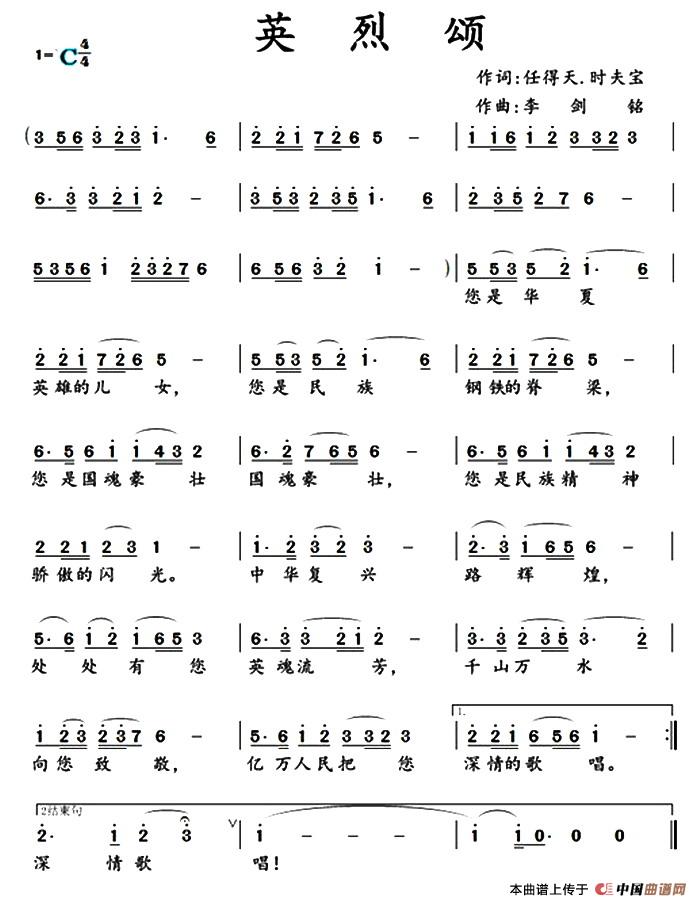 英烈颂 (任得天 时夫宝词 李剑銘曲)