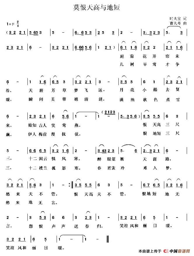 关于《莫恨天高与地短 》曲谱的评论