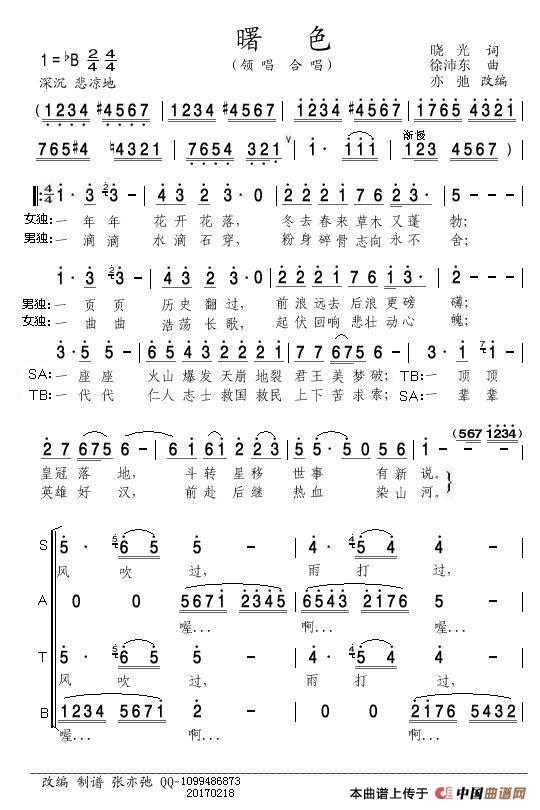 《曙色(亦弛改编)》文本歌词