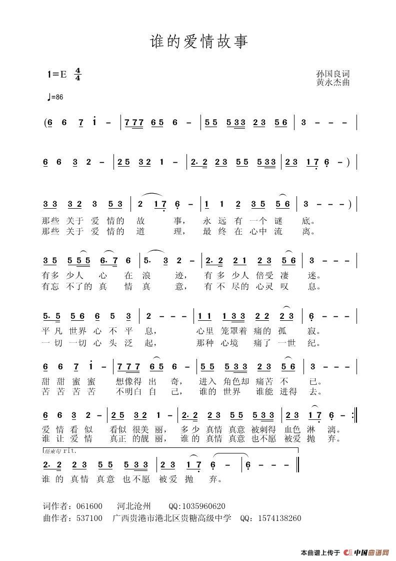 关于《谁的爱情故事》曲谱的评论