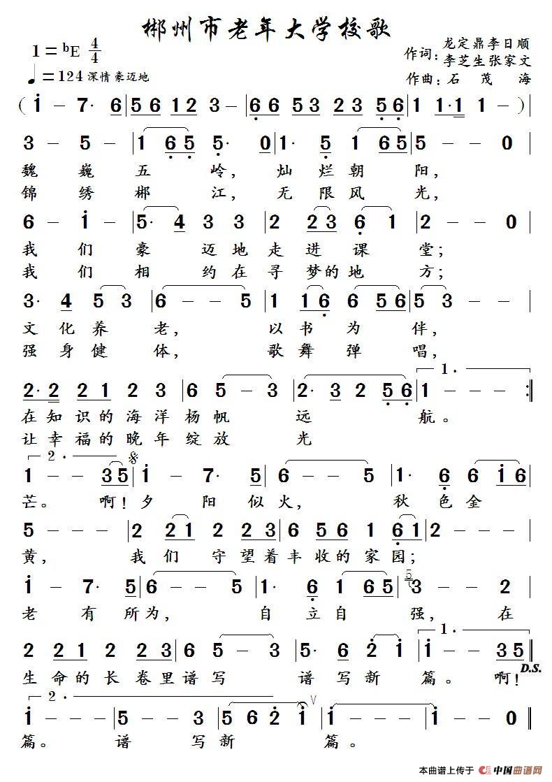 郴州市老年大学校歌(龙定鼎 等词 石茂海曲)