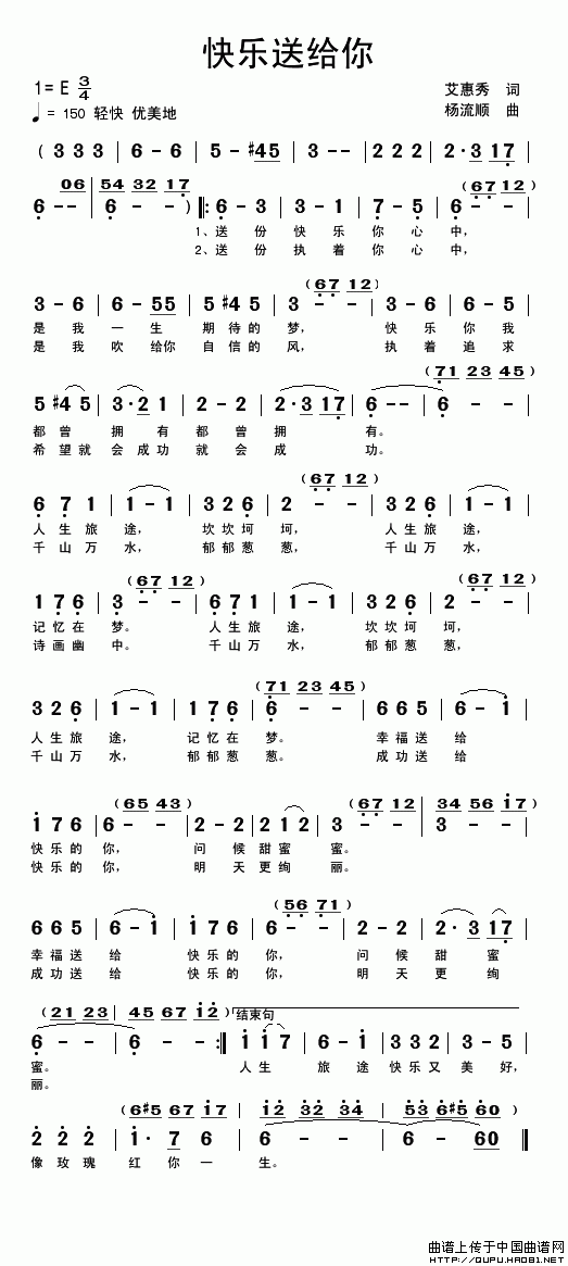 作词:艾惠秀   作曲:杨流顺   格式:简谱   来源:艾惠秀(作词)原创上传   上传:艾惠秀   日期:2010-03-17   浏览次数: