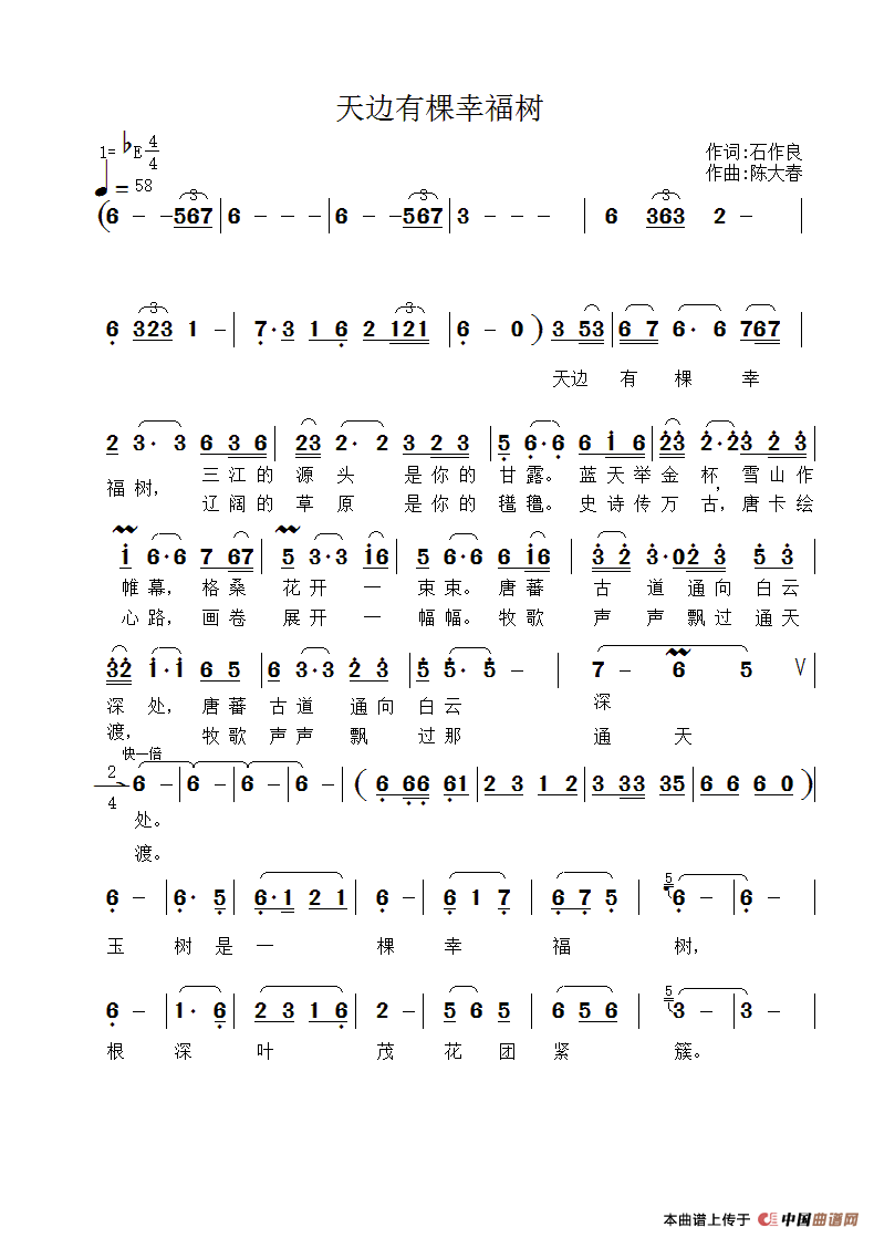 关于《天边有棵幸福树》曲谱的评论