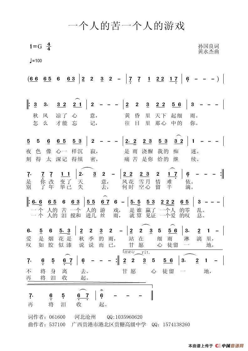 关于《一个人的苦一个人的游戏》曲谱的评论
