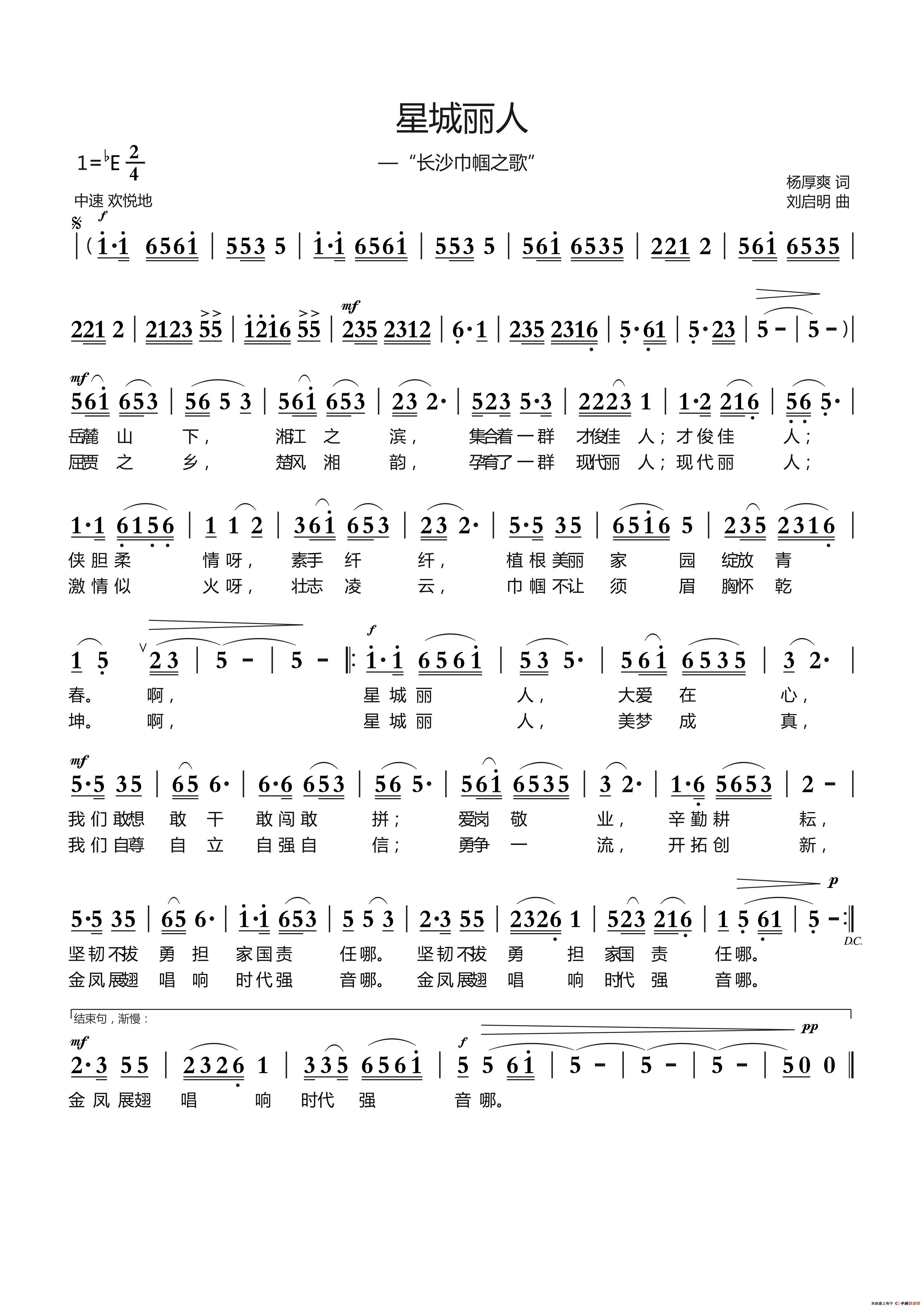长沙市妇女联合会于今年2月15日至3月15日面向全社会开展了“长沙巾帼之歌”歌曲征集活动,并通过长沙晚报、星辰在线等媒体进行了广泛宣传发动,共收到作品397件。经专家评审,最终评出由赵凌云作词、张长松作曲的《长沙巾帼之歌》为入选作品,《星城丽人》(杨厚爽词 刘启明曲)、《《芬芳万里,幸福花开》等5首为入围作品。现将这些作品进行公示,同时广泛征求各界意见。