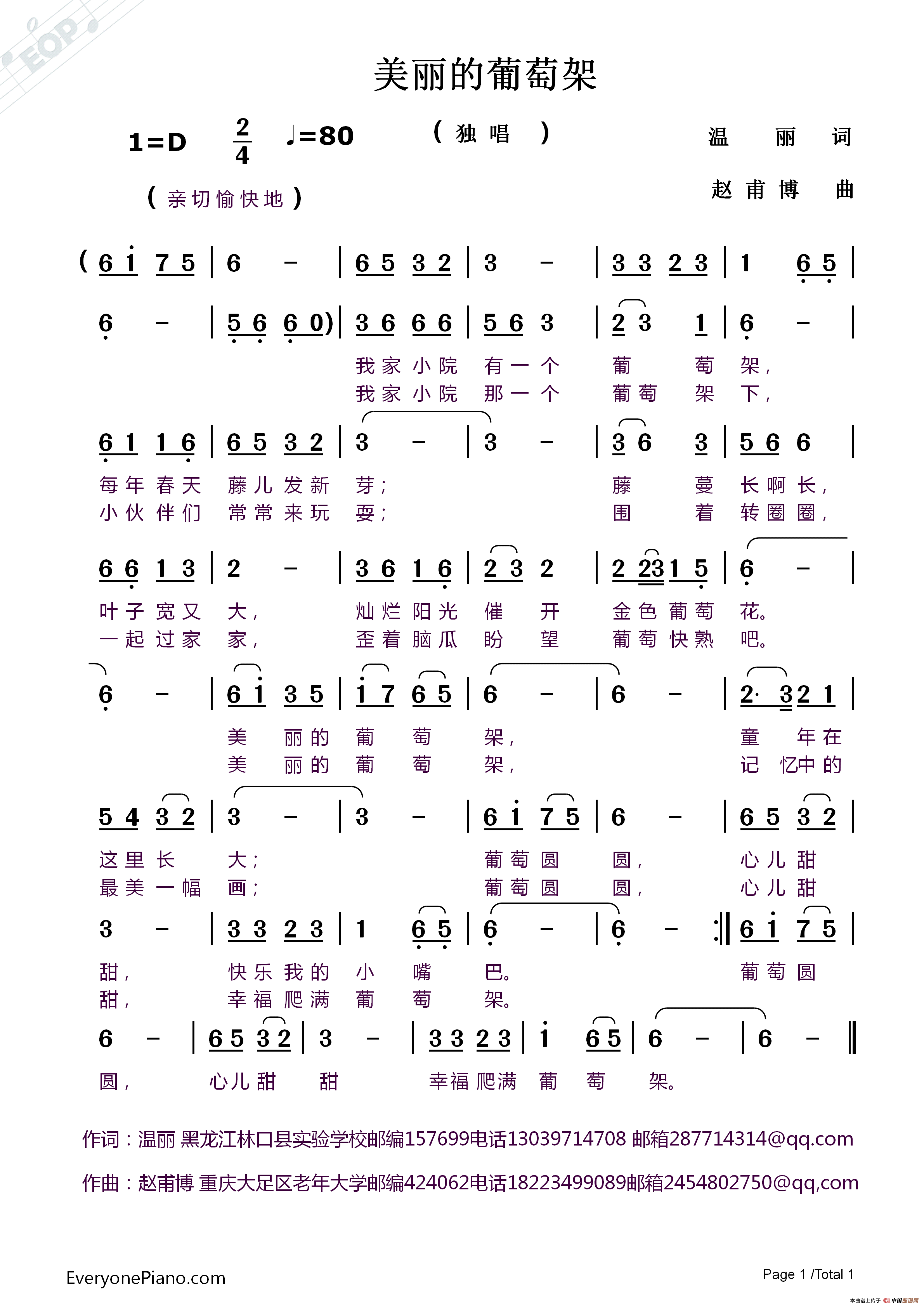 关于《美丽的葡萄架》曲谱的评论