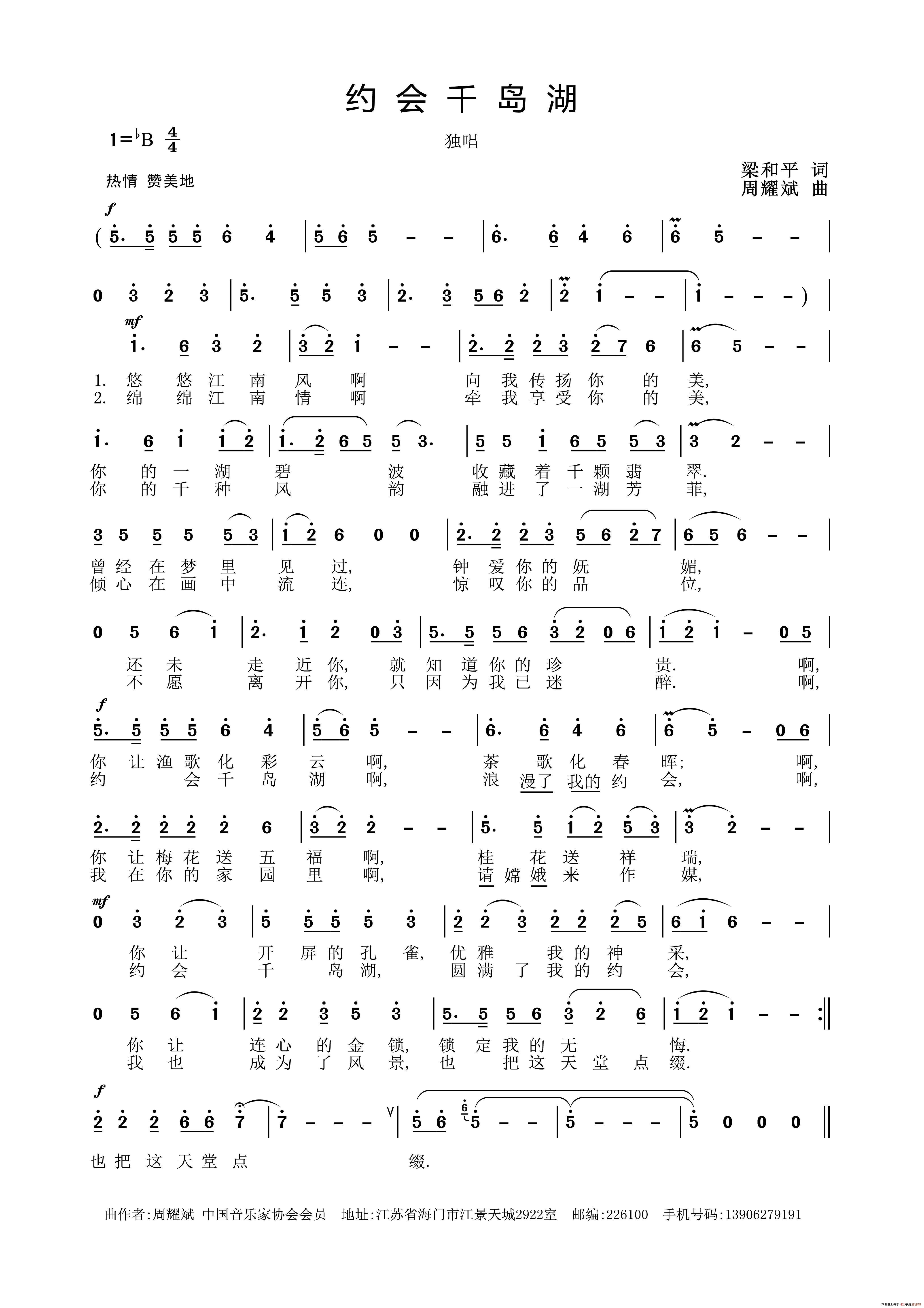 约会千岛湖(梁和平词 周耀斌曲)(1)_原文件名:约会千岛湖-001.jpg