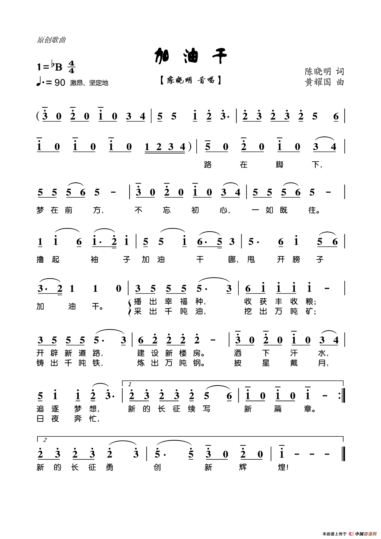 关于《加油干》曲谱的评论