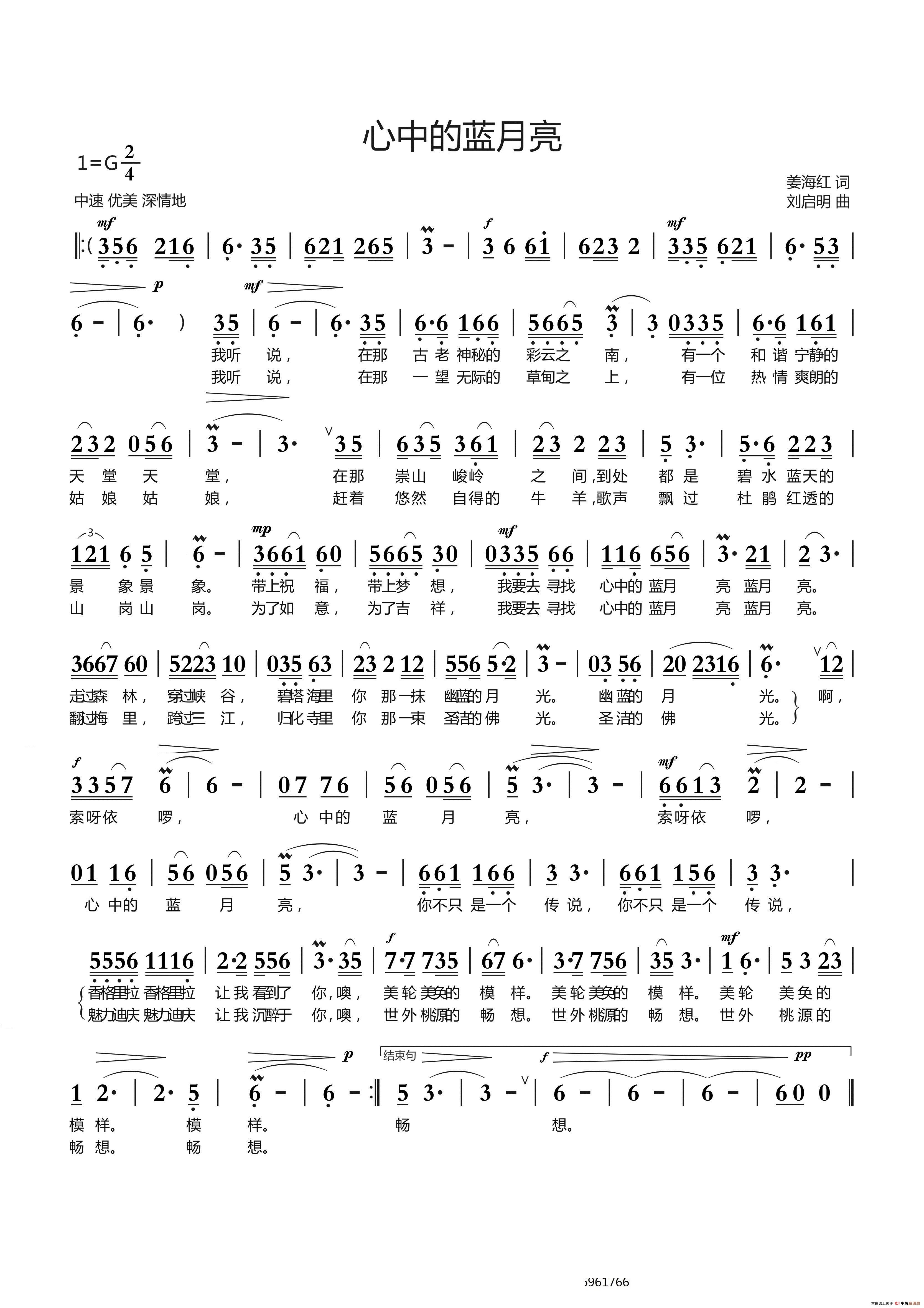 《心中的蓝月亮(姜海红词 刘启明曲)》文本歌词