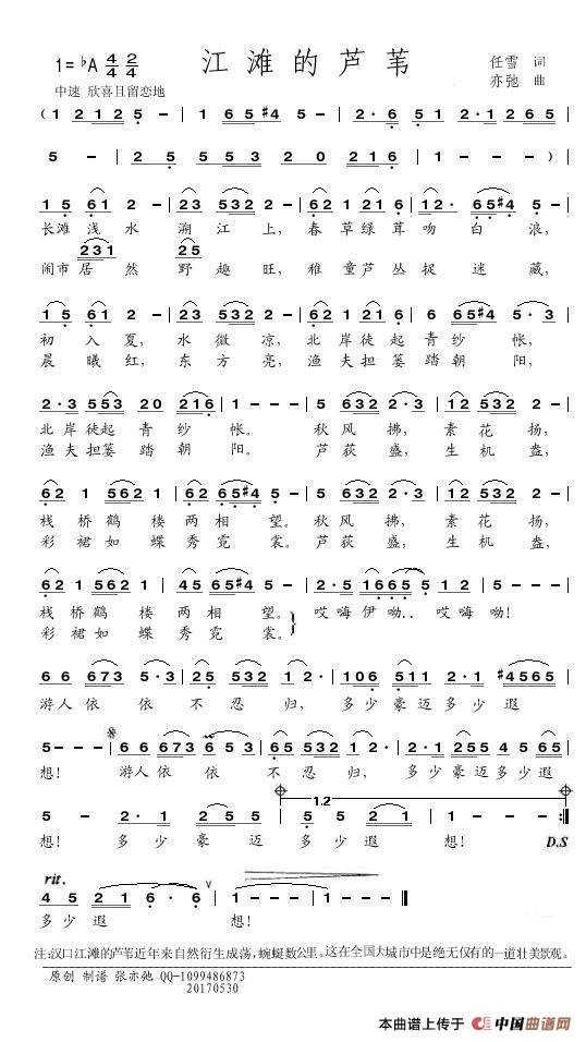 关于《江滩的芦苇(亦弛原创)》曲谱的评论
