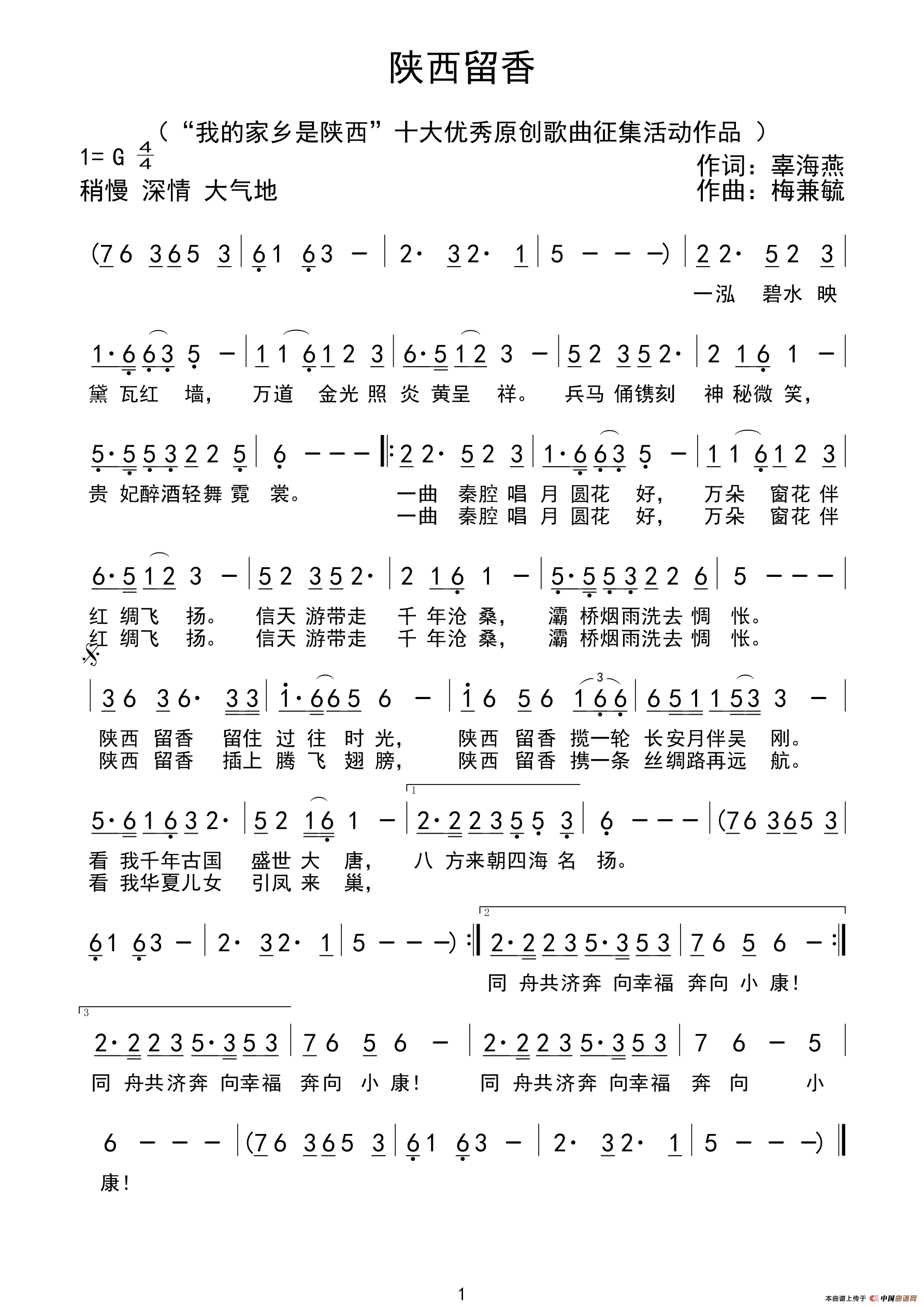 “我的家乡是陕西”十大优秀原创歌曲征集活动作品