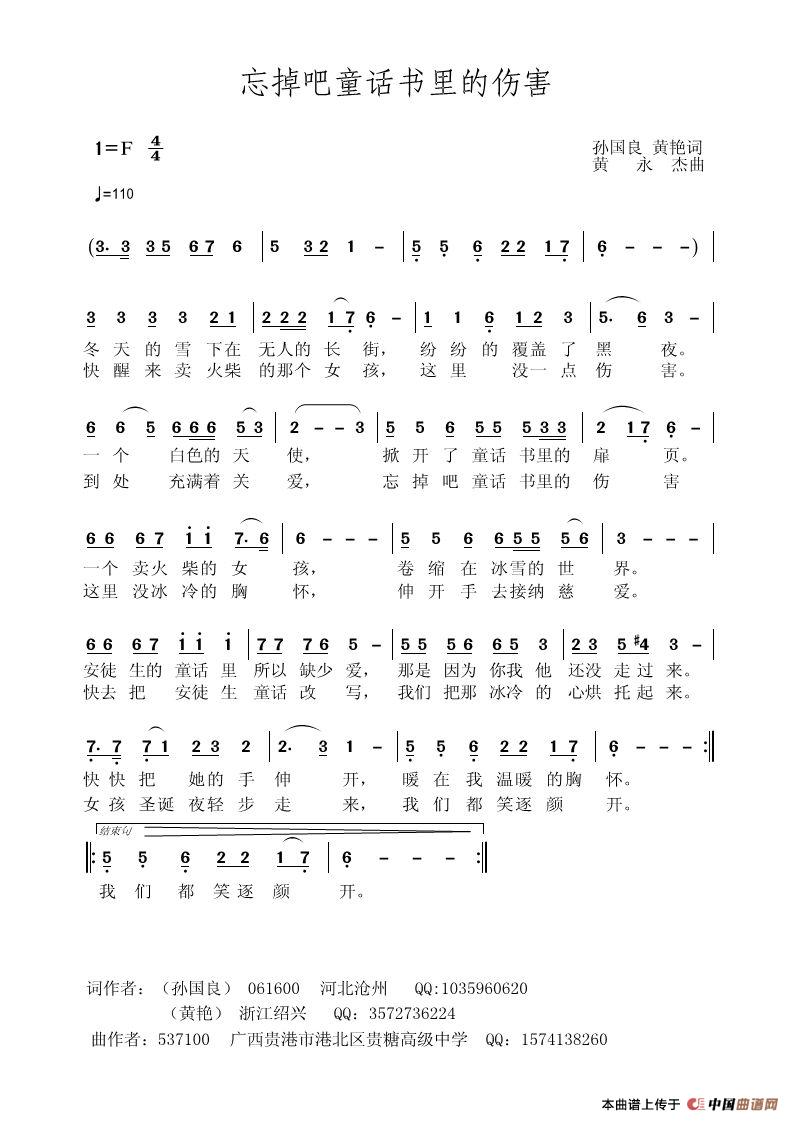 关于《忘掉吧童话书里的伤害》曲谱的评论
