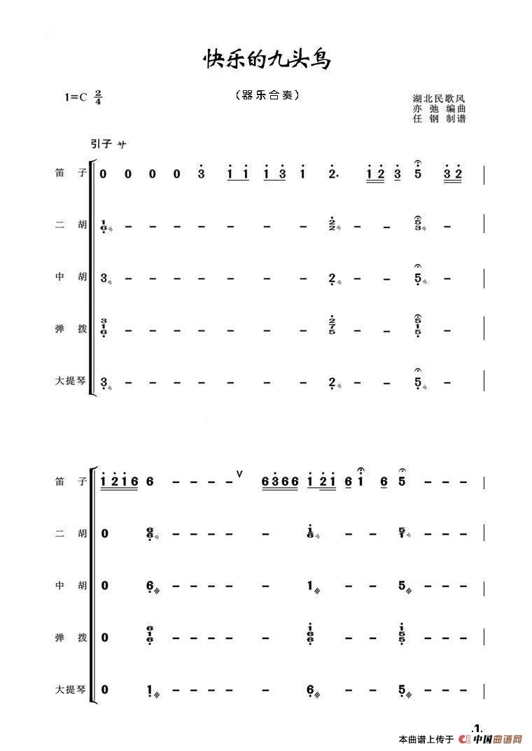 关于《快乐的九头鸟(亦弛编曲)》曲谱的评论