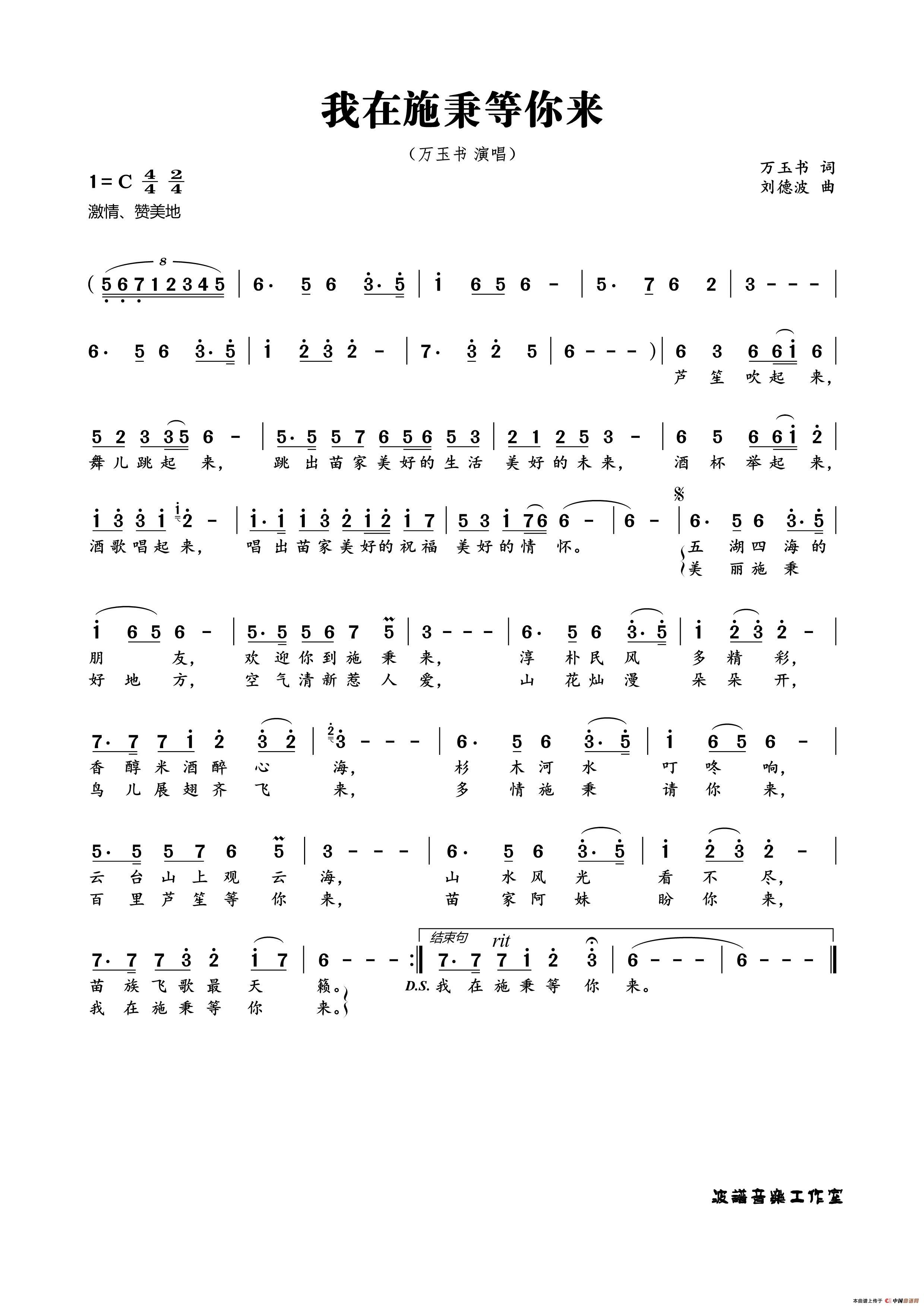 关于《我在施秉等你来》曲谱的评论