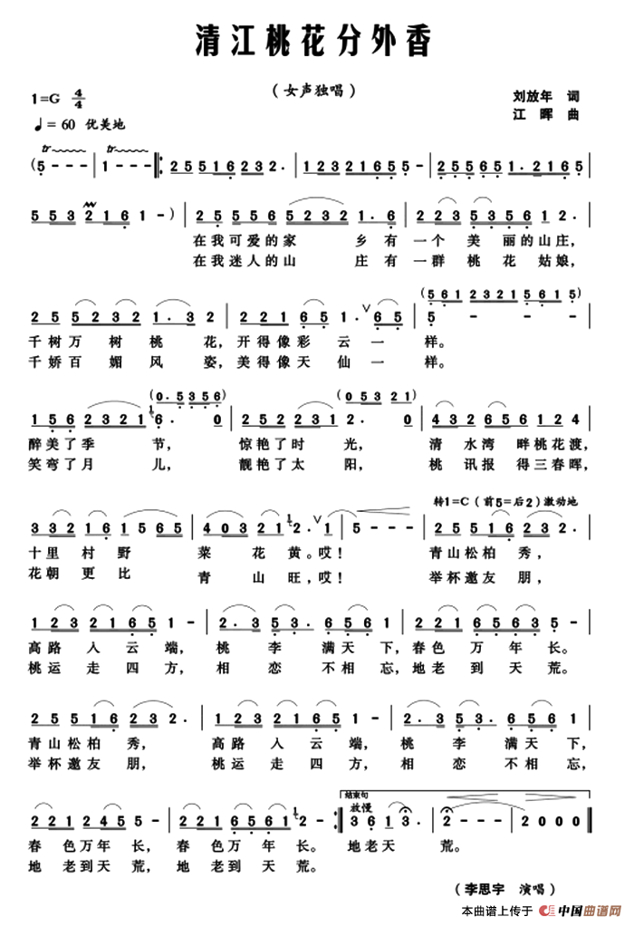 关于《清江桃花分外香》曲谱的评论