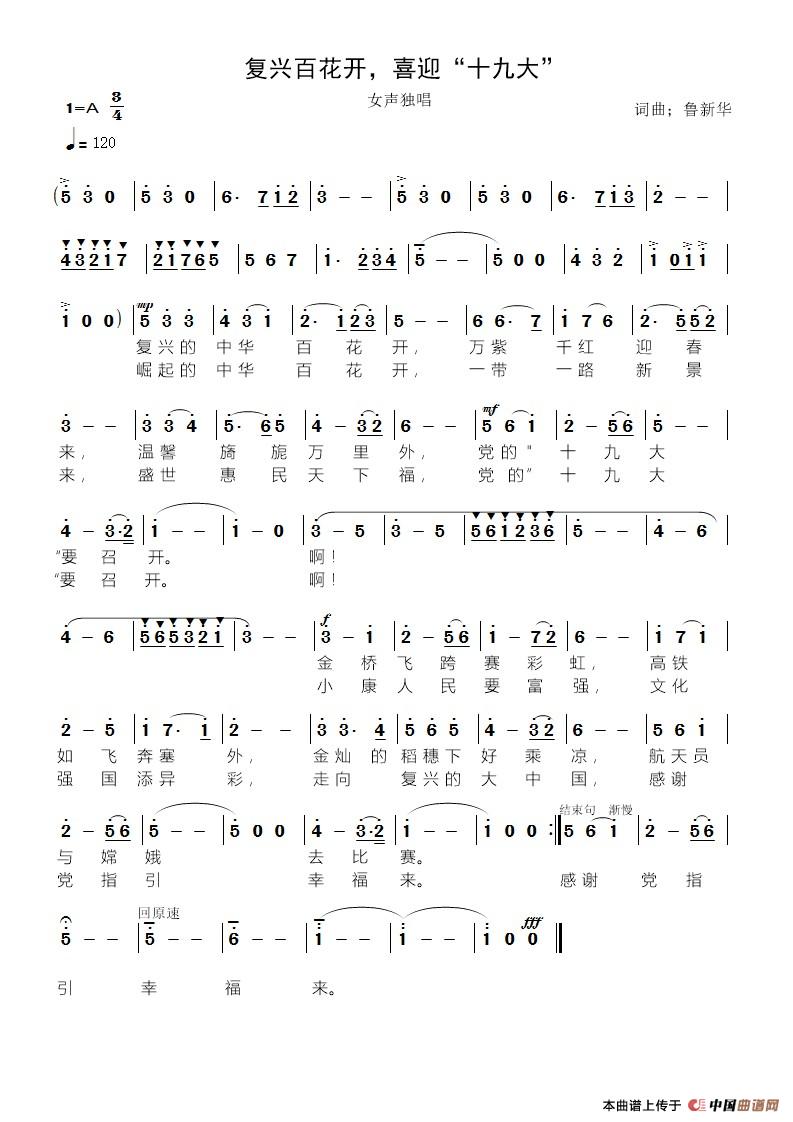 关于《复兴百花开,喜迎“十九大”》曲谱的评论