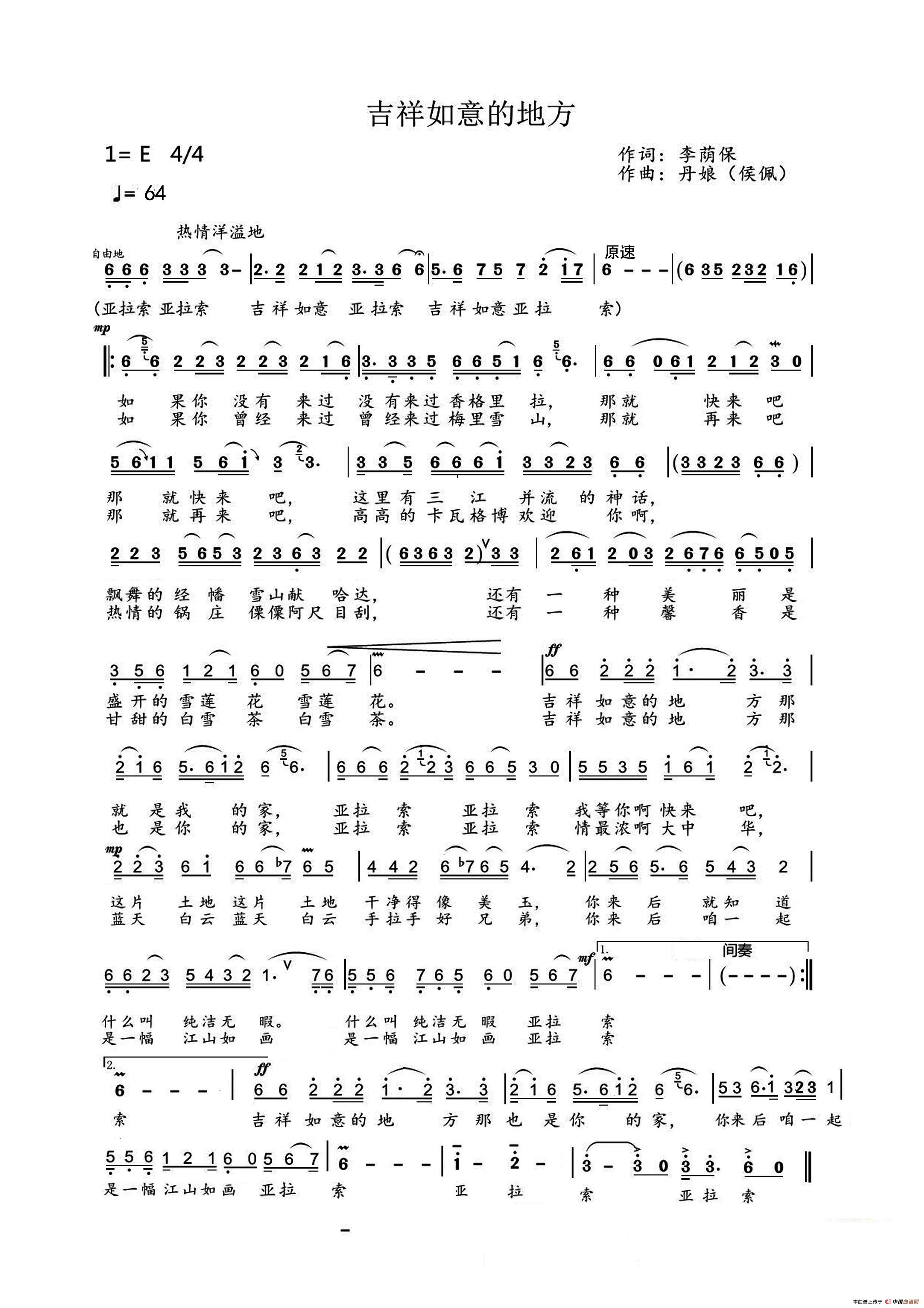 吉祥如意的地方(李荫保词 侯佩曲唱)