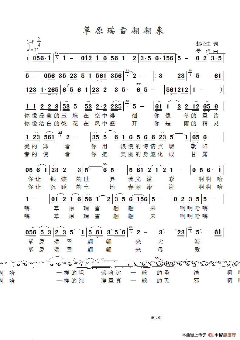 关于《草原瑞雪翩翩来》曲谱的评论