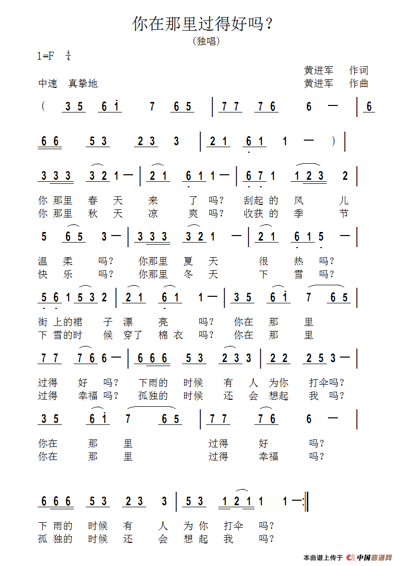 关于《你在那里过得好吗?》曲谱的评论