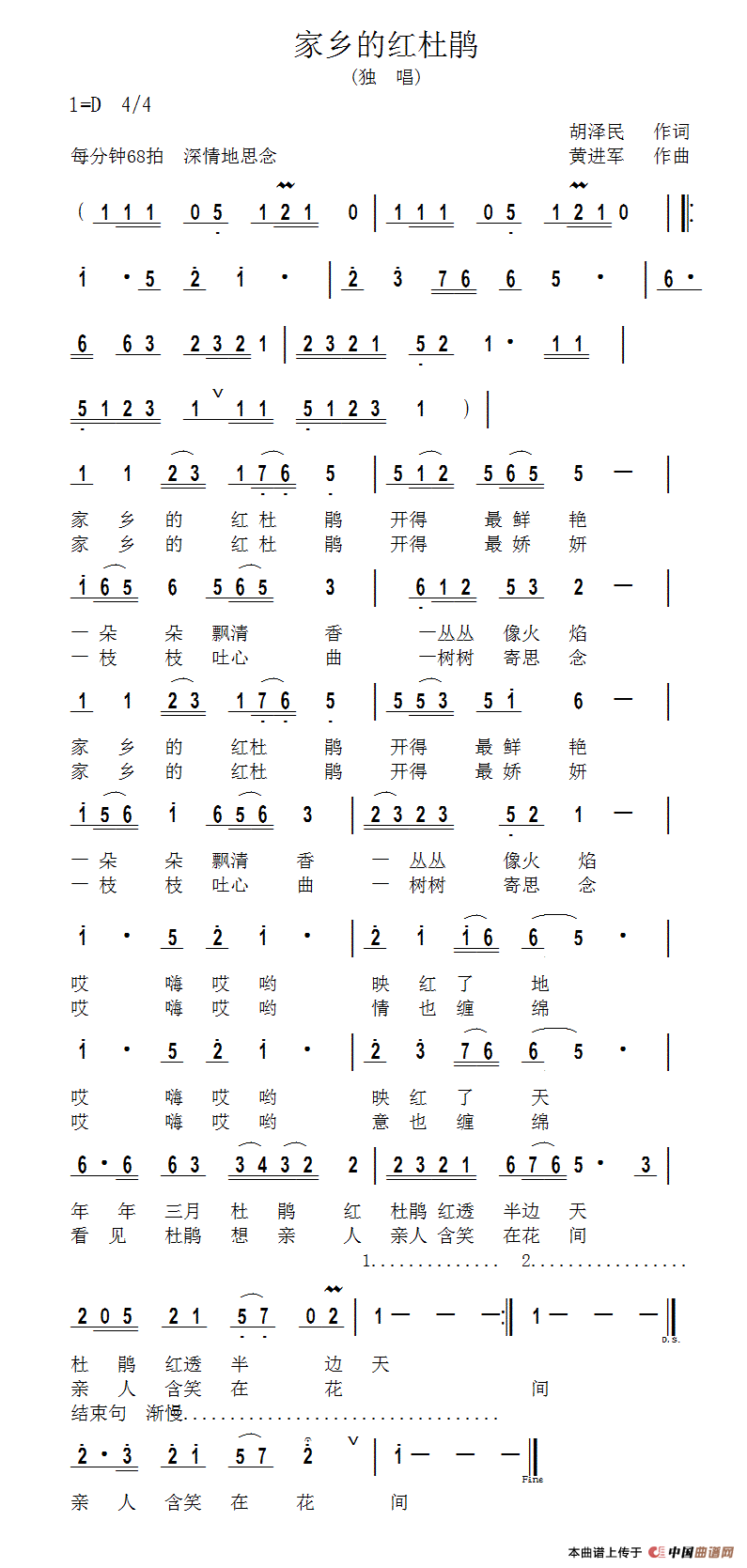 作词:胡泽民   作曲:黄进军   来源:谱友黄进军作曲上传   上传:黄进军作曲   日期:2017-10-17   浏览次数: