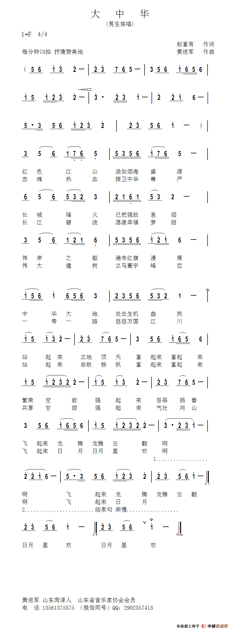 提示:在曲谱图片上单击右键,选择"图片另存为..."即可将曲谱保存到您的电脑中,打印时候可将图片插入到WORD中,调整合适大小打印即可。