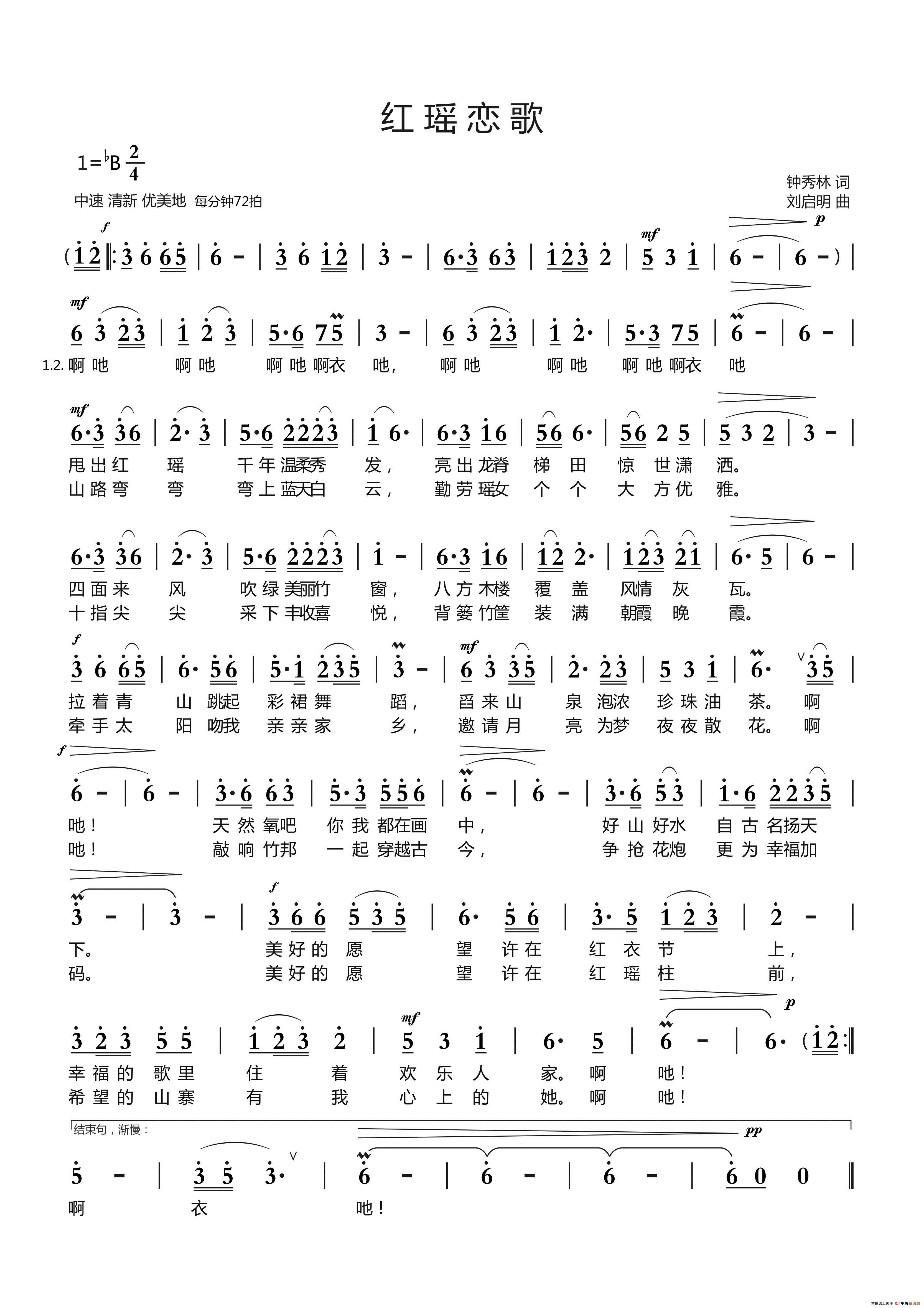 关于《红瑶恋歌(钟秀林词 刘启明曲)》曲谱的评论