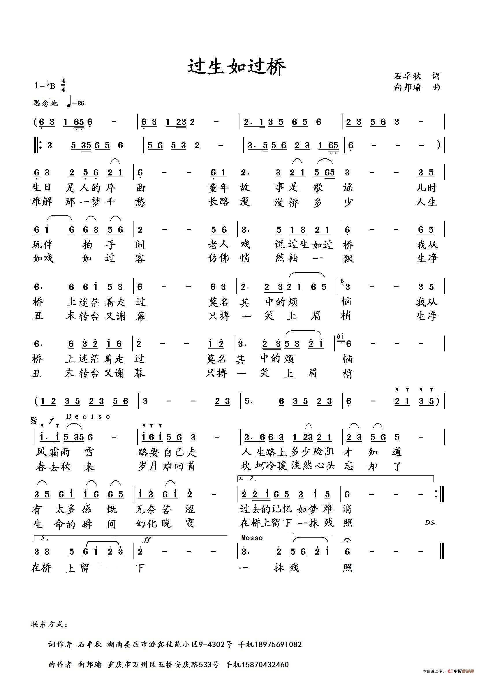 《过生如过桥》文本歌词