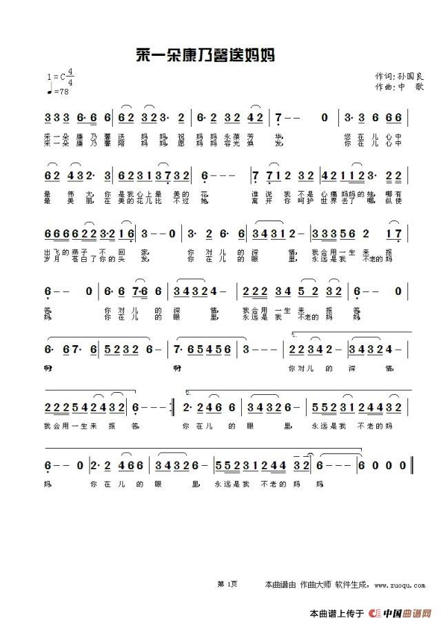 关于《采一朵康乃馨送妈妈》曲谱的评论