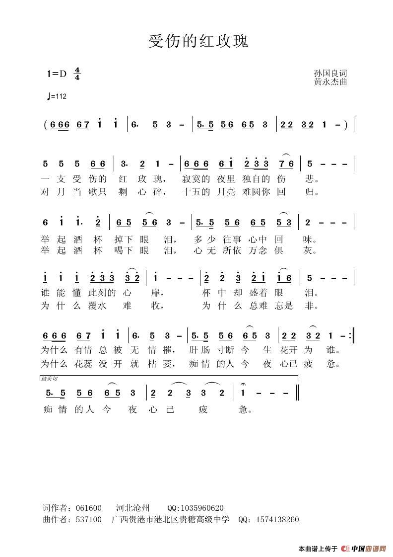作词:孙国良   作曲:黄永杰   来源:原创曲谱   上传:孙国良s88   日期:2017-12-23   浏览次数: