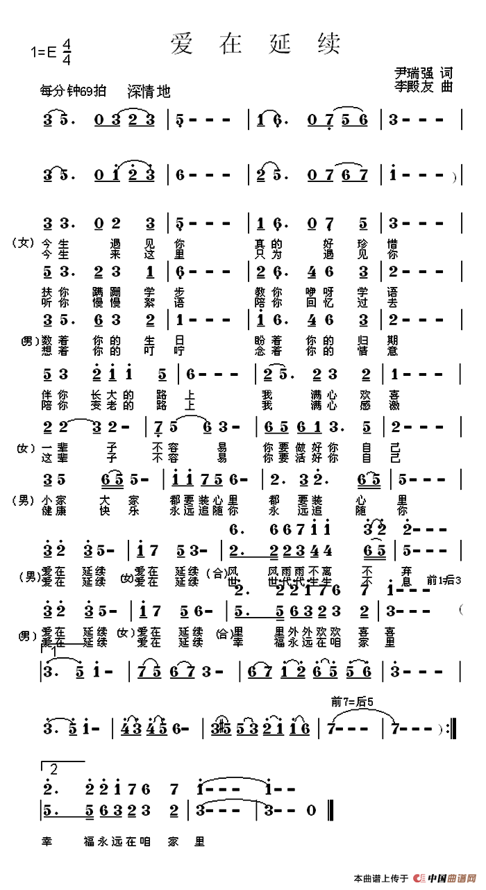 关于《爱在延续》曲谱的评论
