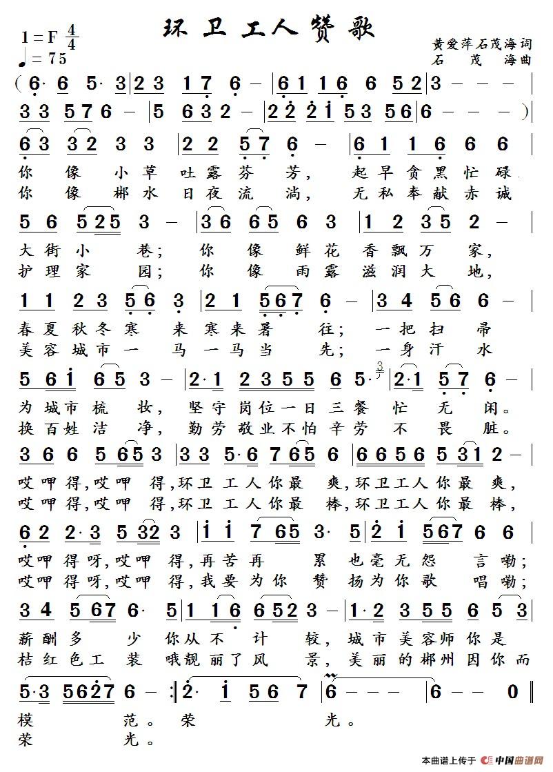环卫工人赞歌 (黄爱萍 石茂海 词 石茂海 曲)