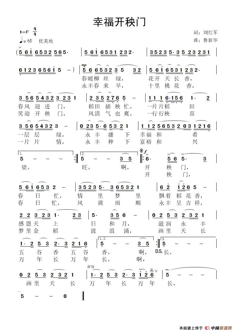 关于《幸福开秧门》曲谱的评论