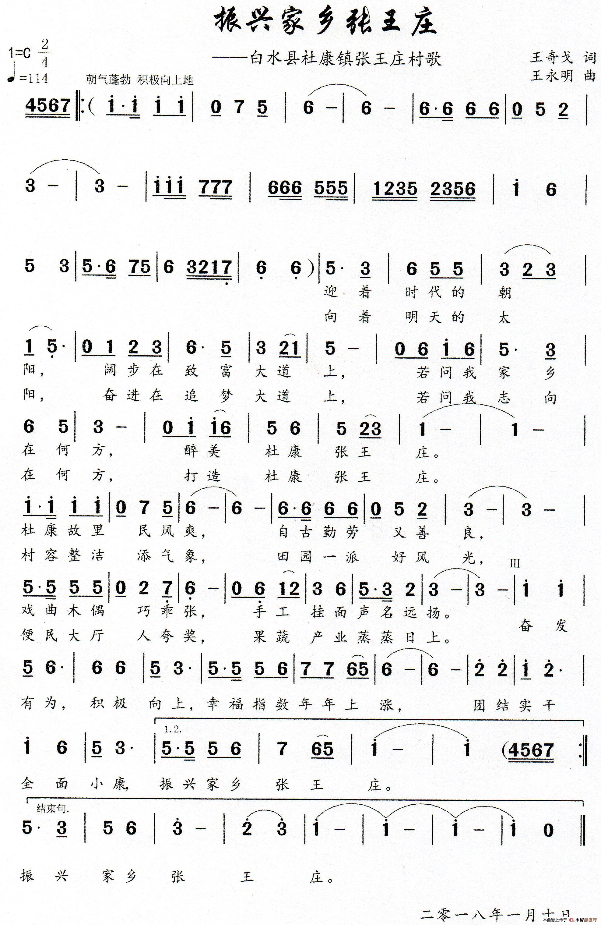 关于《振兴家乡张王庄》曲谱的评论